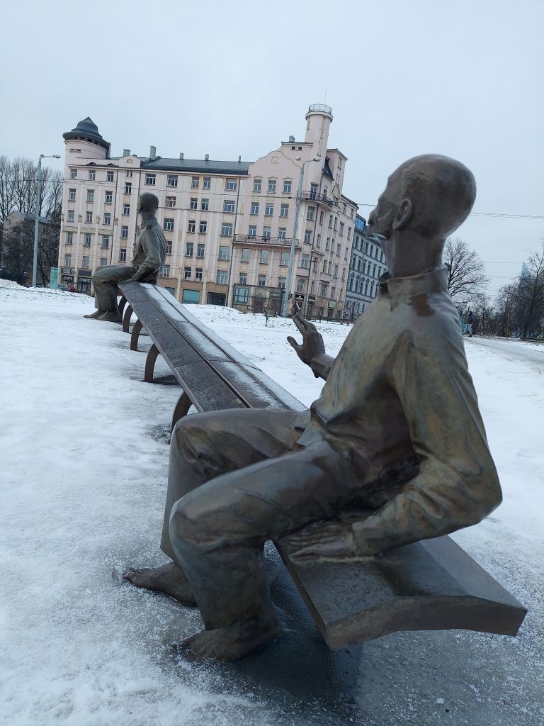 On the 2nd day in Riga, I went to the National Library of Latvia first. The design of the library was unique. When I enter the building I saw some nicely designed roofs for books and there were many books and study rooms. Also, the view from there was nice as well. I went up to the last floor and took some pictures there. Then I walked down all floors and checked inside the library. When finished visiting inside I walked a bit outside too and I like one sculpture that was from child to adult with increasing size of the books.