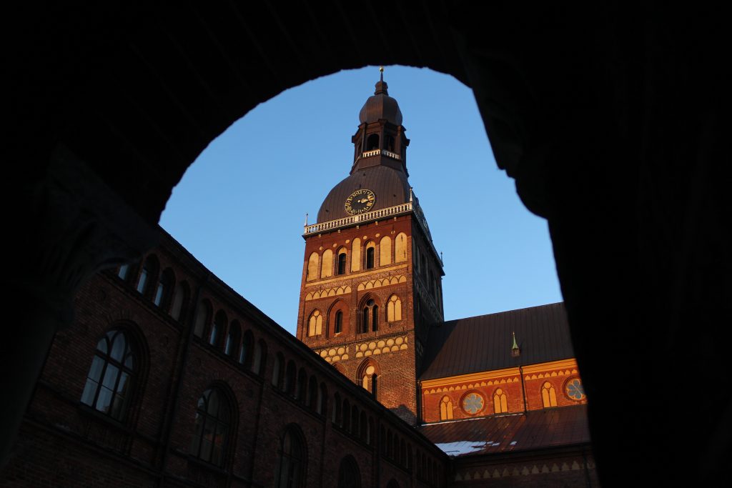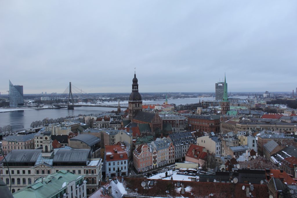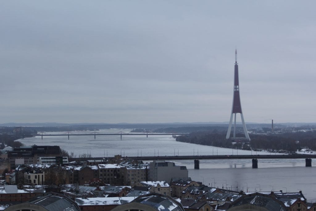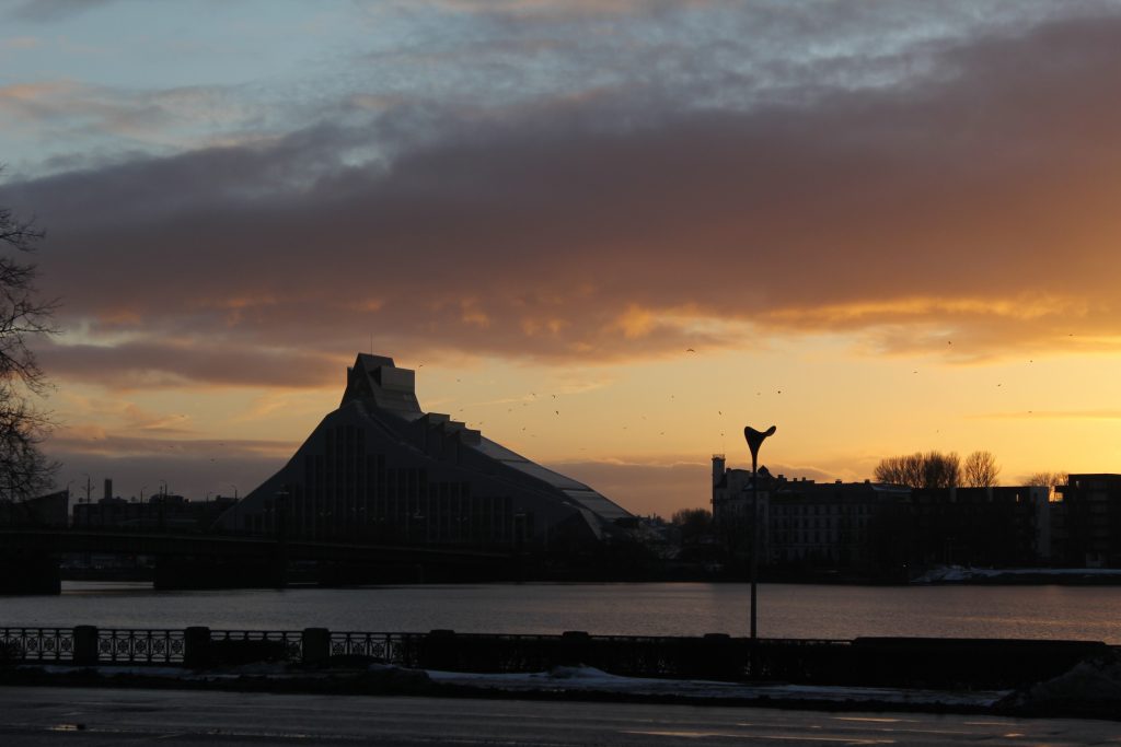 After checking in and resting a bit in the hotel. I went to the city center by walking and passed the Stone Bridge over the Daugava river. I arrived at the House of the Blackheads. The square calls Ratslaukums and there was a big Christmas tree at that time. On that square, I saw the Riga City Hall. It was a nicely designed square I think and after taking some images I continue the walk to the Riga Cathedral. The Cathedral was looking good and after paying the entrance fee, I visited the Cathedral as well. It was a nice big cathedral. The building is a Gothic and Baroque style. After finishing the visit there I walked to the riverside and it was sunset hours. I took some pictures of sunset colors with the National Library of Latvia.