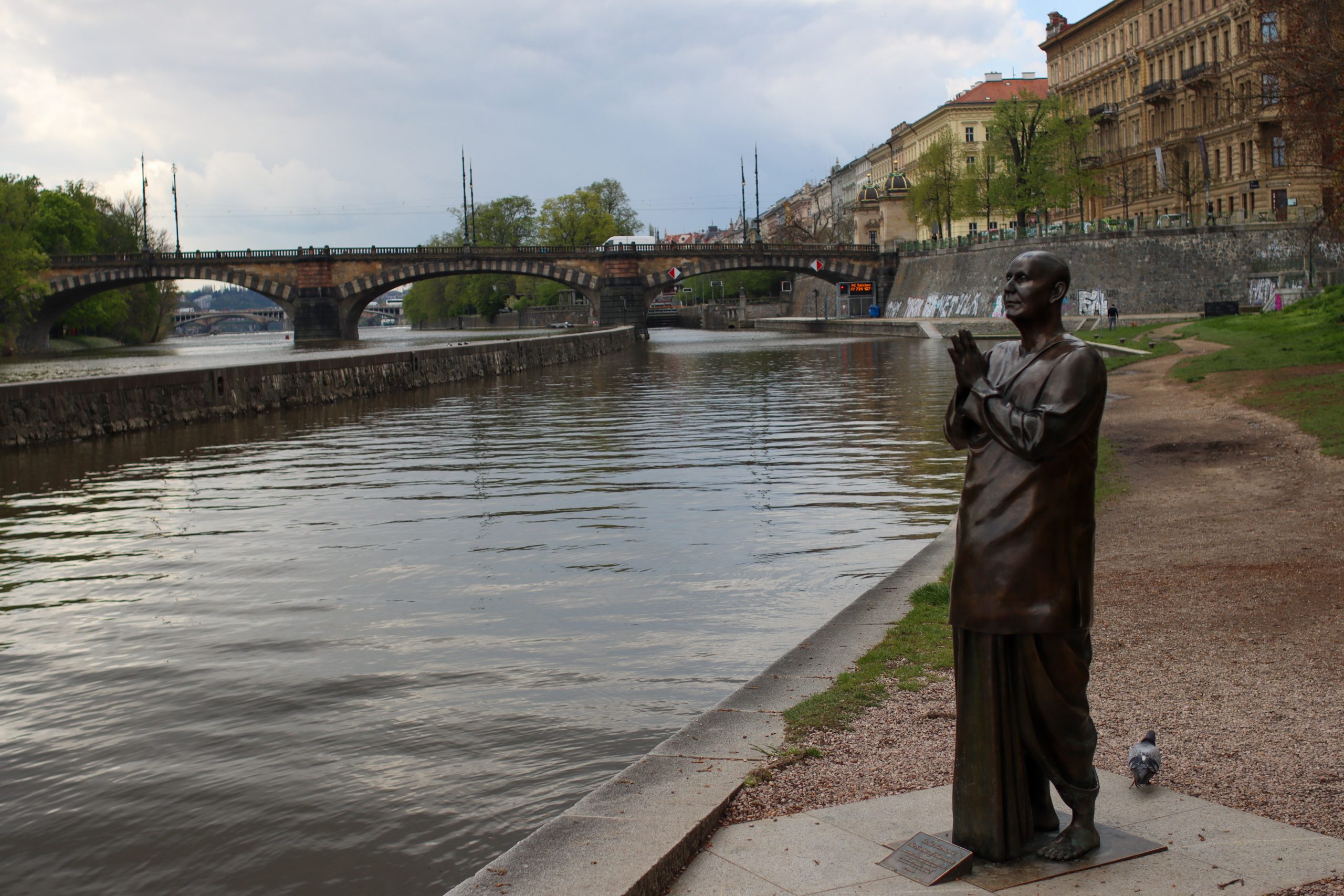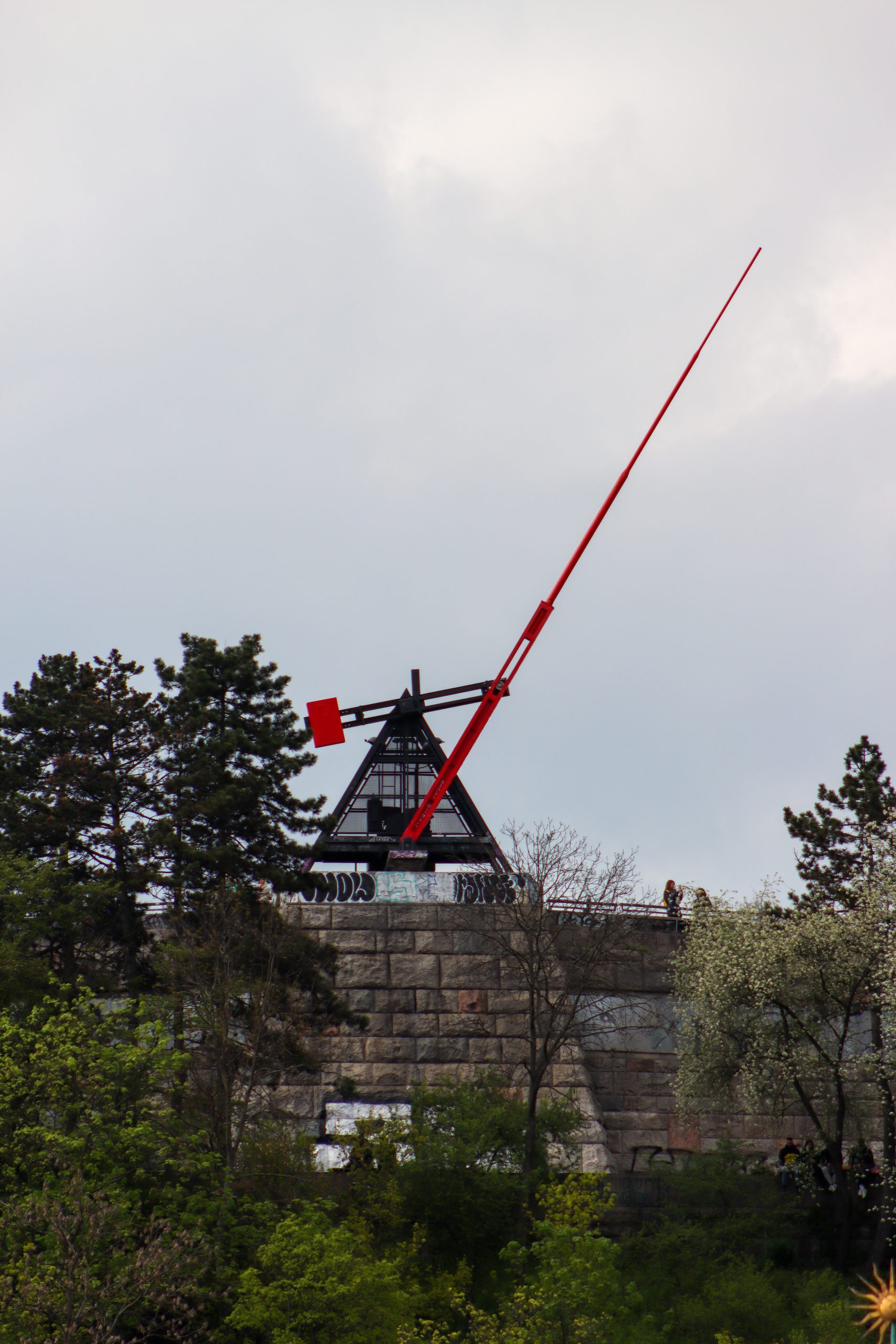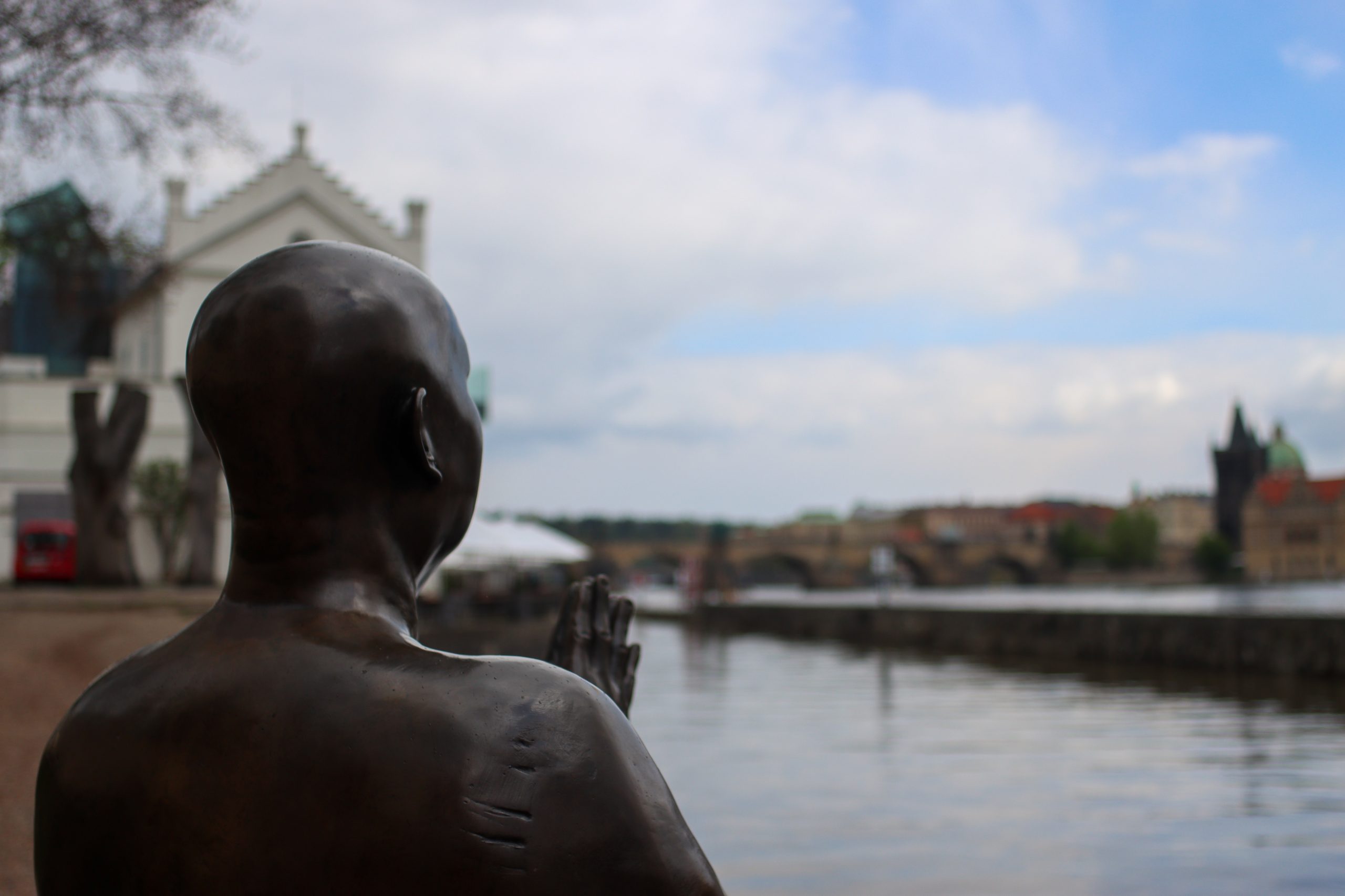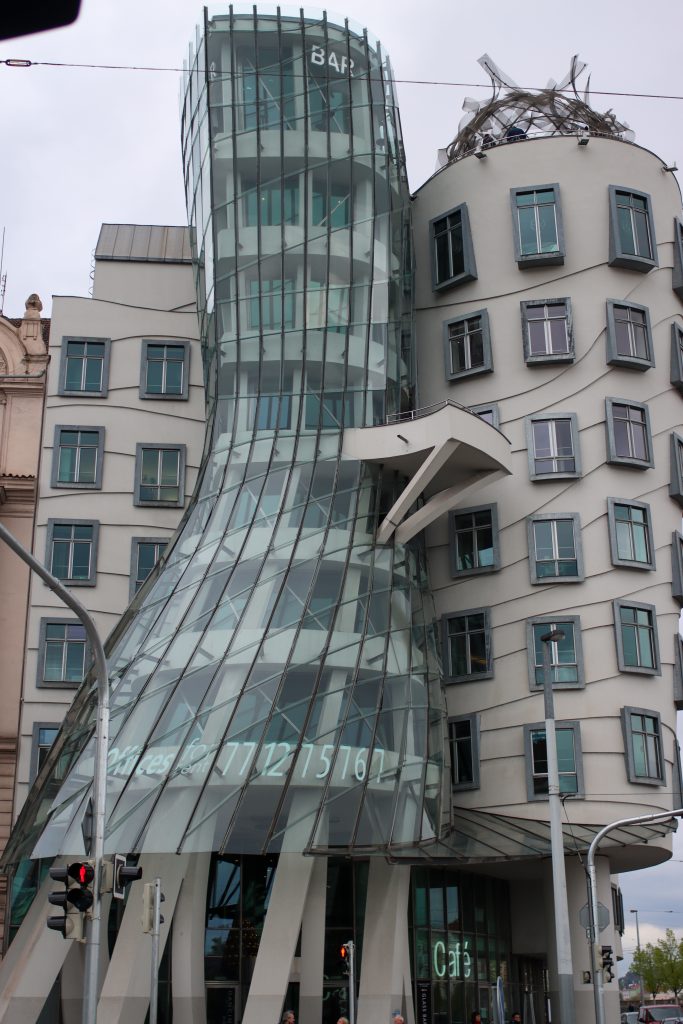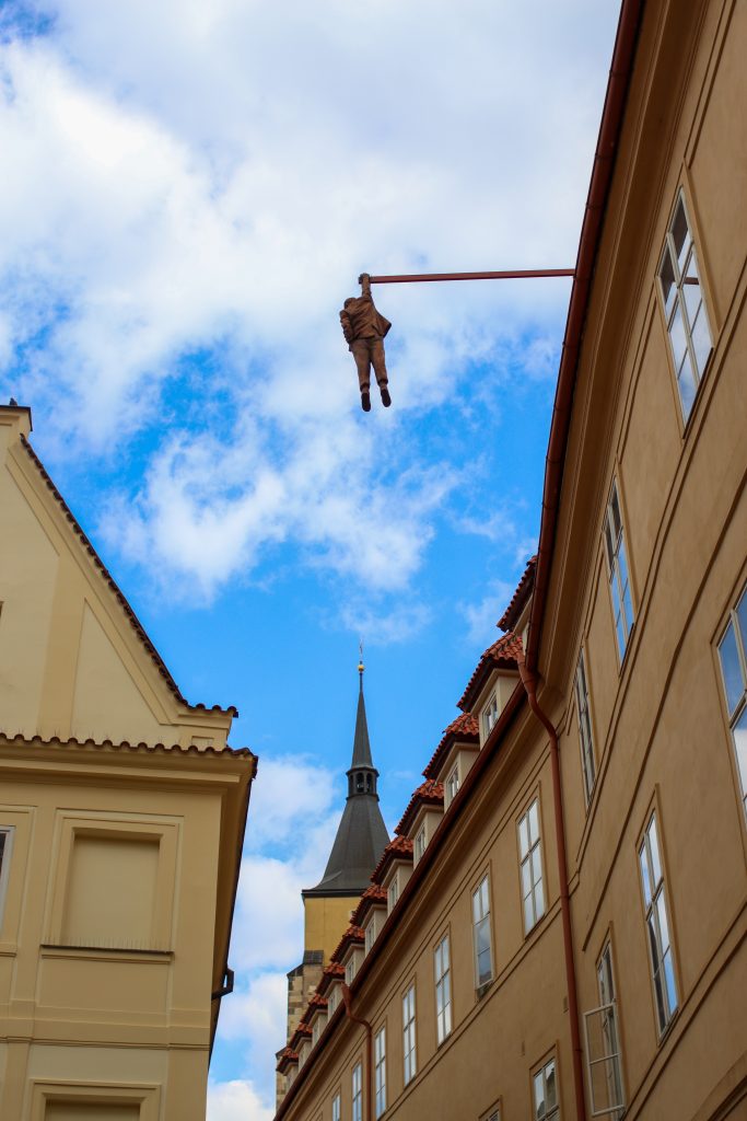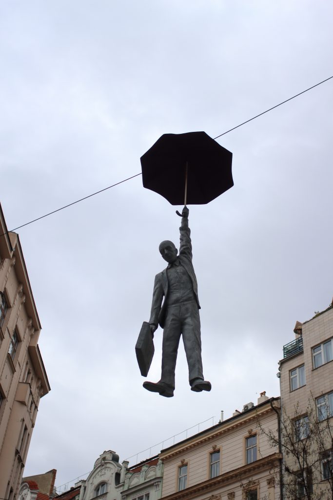 When I finish that area, I started walking to another spot where is famous Dancing House. I remember I saw that building many times in books and on the internet. It was nice to see there too. It was a nice and interesting building with different architecture. Then when I walk I saw a monument Man with an umbrella between houses and it was in the sky.