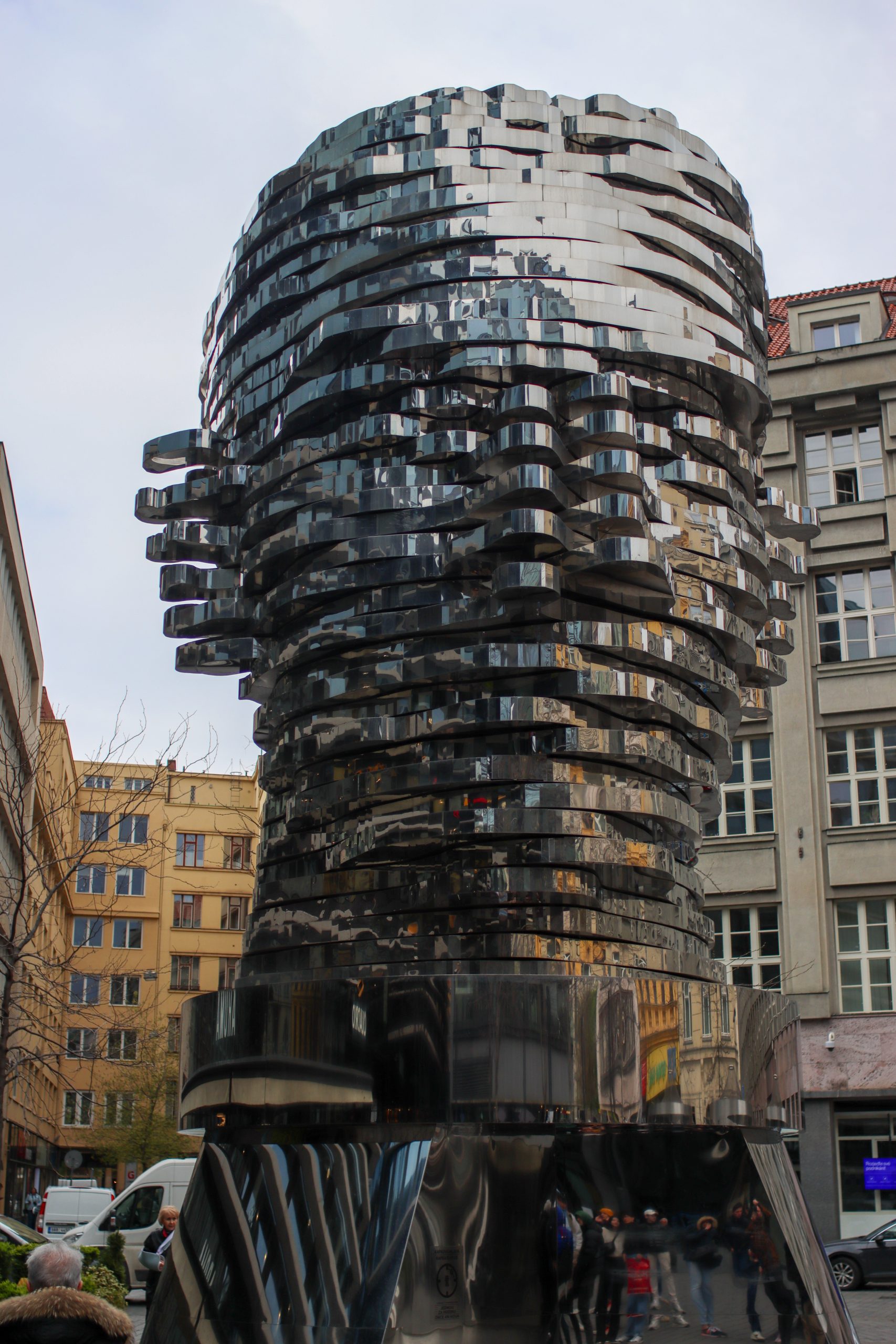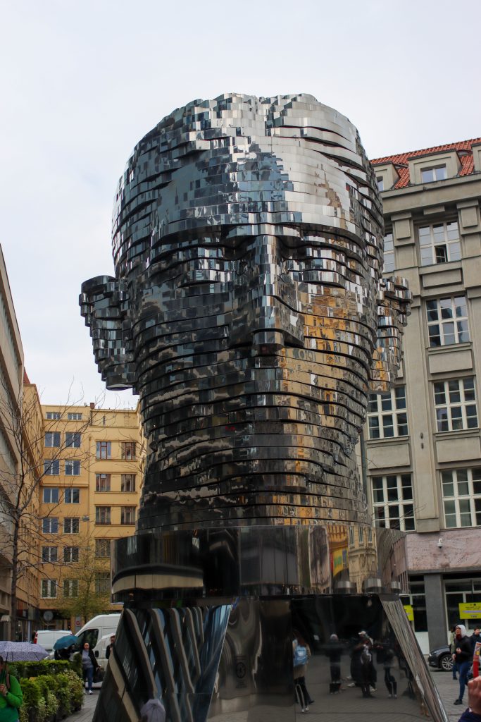 Franz Kafka rotating head is one of the most famous Prague spots as well and I walked there and see that. When I arrived I saw a huge head monument with movement. It was well designed and people could see the Franz Kafka figure via that. I took some photos and videos there. It was good to see the movement of all the parts and bring all in a piece at the end.