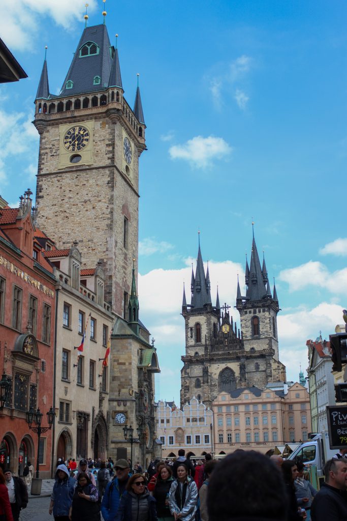 Another exciting part and maybe the most famous place Old Town Square and after the Franz Kafka monument I went there. It was so so beautiful square with many landmarks, and shops around. The first place I wanted to see was there Prague Astronomical Clock and it was amazing I really liked it. Nowadays I am so much into clock mechanisms and it was nice to see that big and worthy visit clock in there. Another Place in there I walked to the Church of Lady before Tyn and there was close but from outside it was nice and had 2 towers of the church. Near the there, National Gallery of Prague was in. In the another corner of the square, you can see St Nicholas Church. Starometska radnice and Jan Hus monument were in other places in the square and I saw them.
