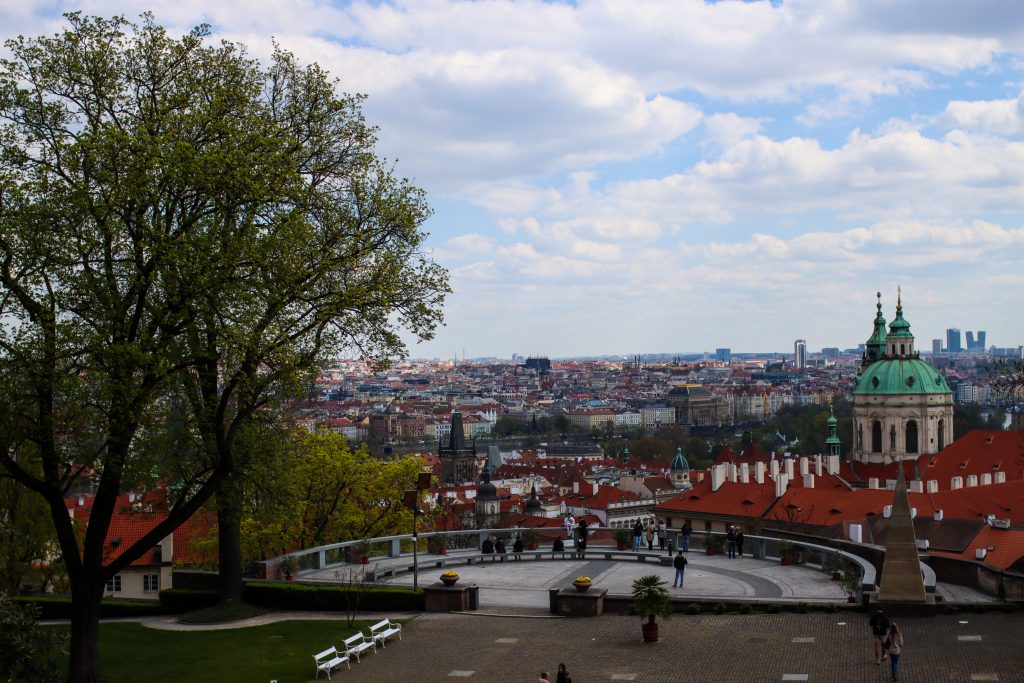 On 26 April I woke up early and after having breakfast I started walking to Kampa Park just near the Charles Bridge. That park was a nice small park in the city center and Lennon Wall is just next to there. That wall has many graffiti and people also can add something freely there. After there I walked up to the Petrin Tower. That tower was in Petrin Park and it is probably the highest viewpoint in Prague. I went up to the top of the tower and took some views of Prague images. The city was so beautiful and all the famous spots I saw easily from the tower. After going down, I walked a bit in Petrin Park there is Mirror Maze, an observation deck and if want to use there is a funicular railway. Just near the park Strahov Monastery, you can see. There has a good viewpoint and a nice building as well.
