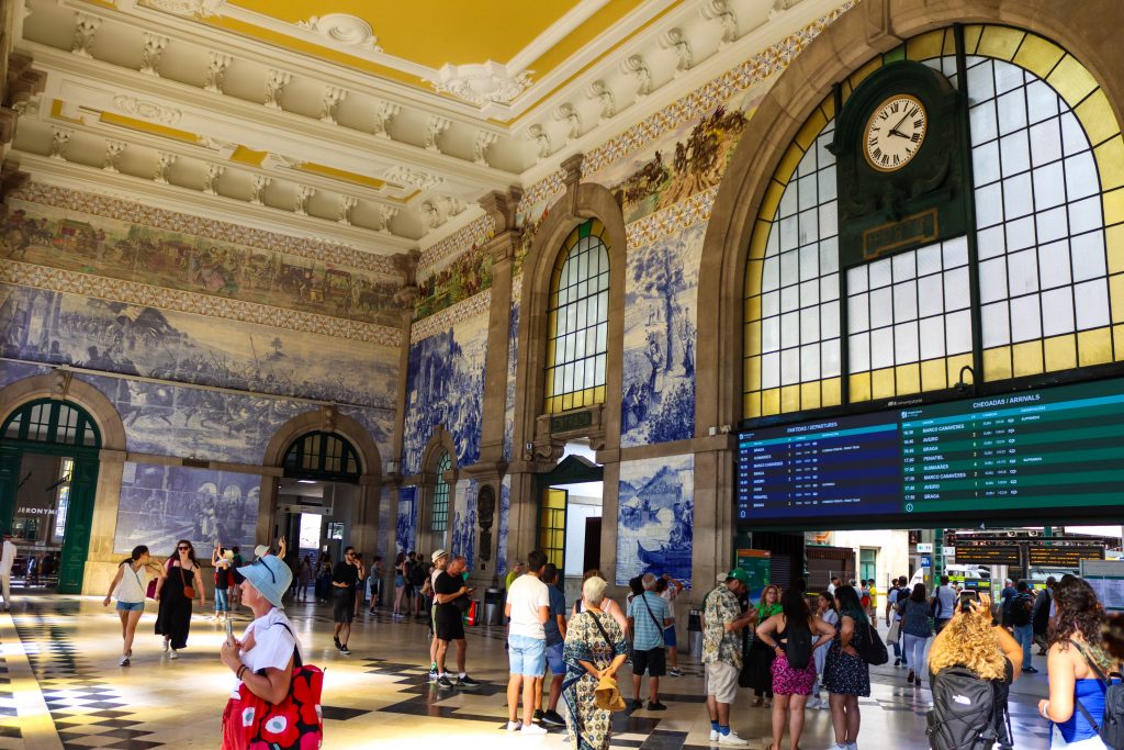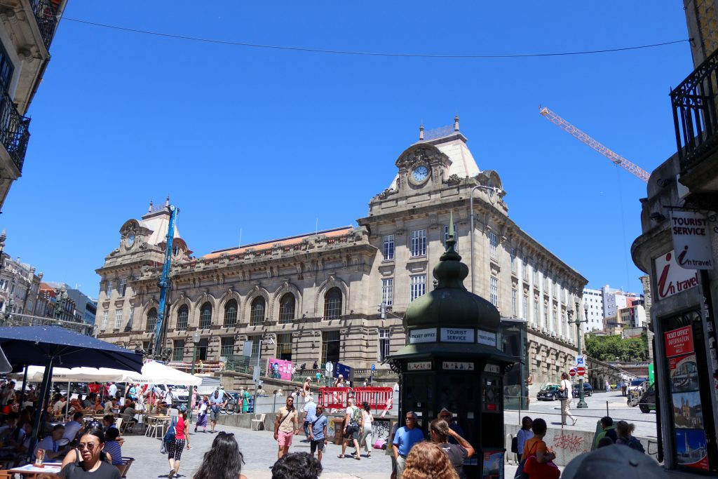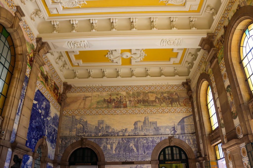 Porto is one of the biggest cities in Portugal. When I visit there, I only stay 1 day but it was still nice to see the main areas of the city. I went there with friends and when we arrive in the city first we checked in for the accommodation then tried to find a nice place to sit and rest a bit. After walking through the Igreja do Carmo church and walked around we found some restaurants opposite the Sao Bento Station and sit there a bit. I ordered a coffee and nata which is a Portuguese dessert. In the UK I went to eat that dessert at some Portuguese bakery shops and it was really nice to try it in Portugal too. It was fresh and I liked it. After resting a bit we went to the Sao Bento Station. That station was a nice indoor design and colorful walls. After taking some photos we head to the Porto Cathedral.