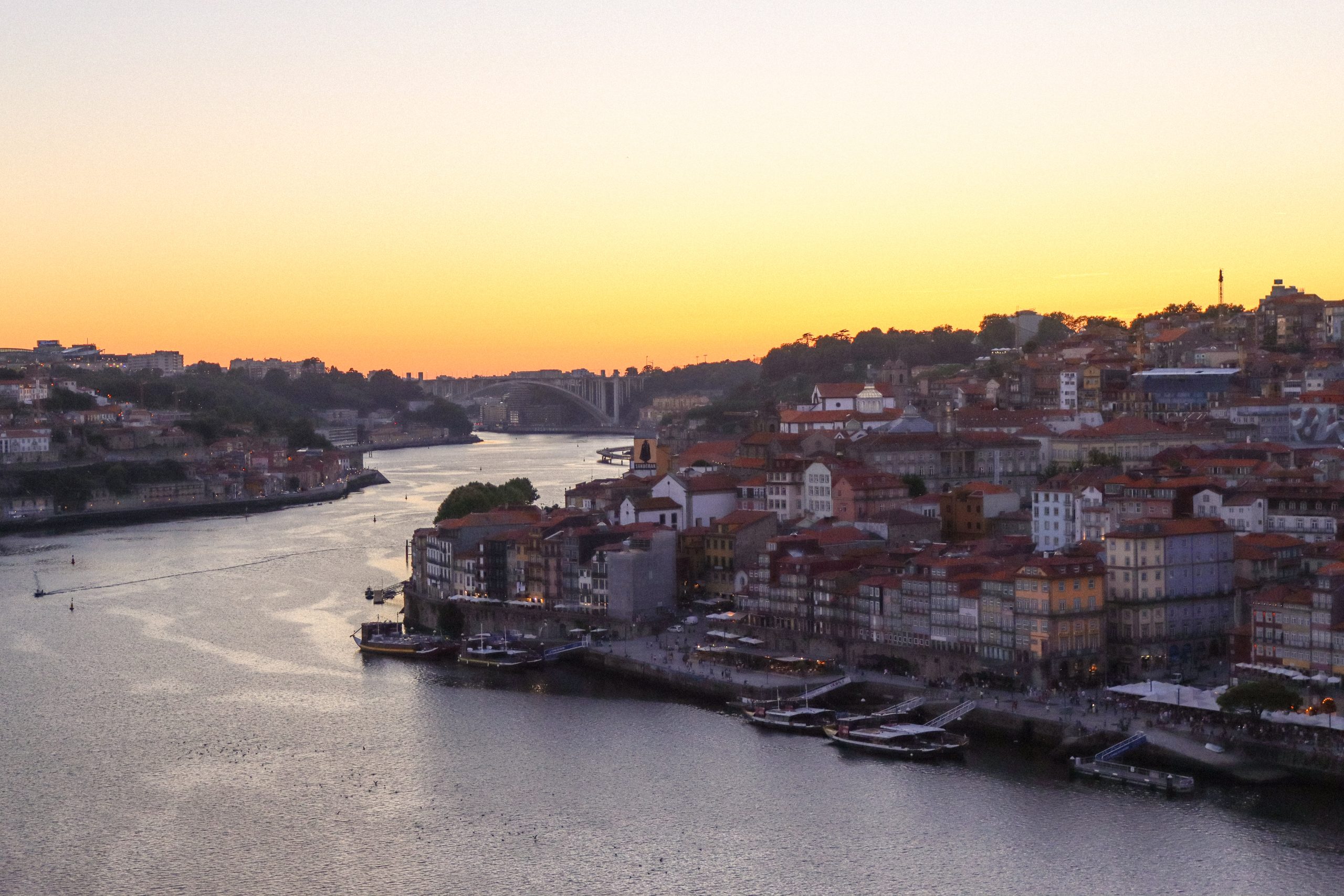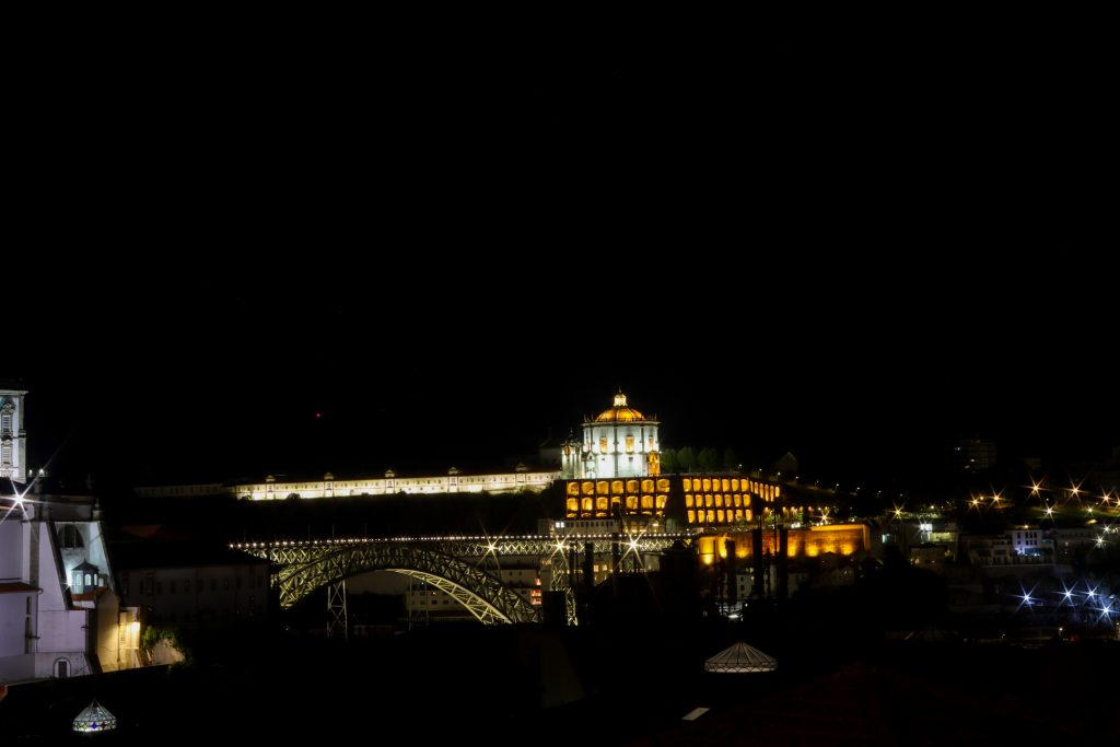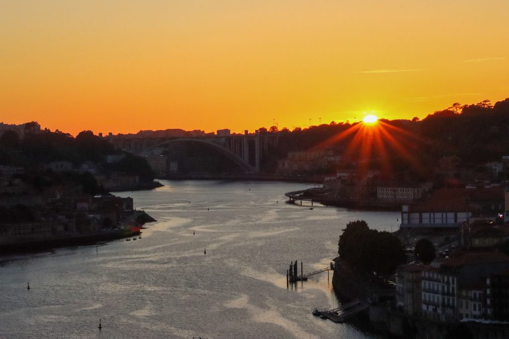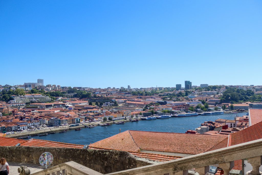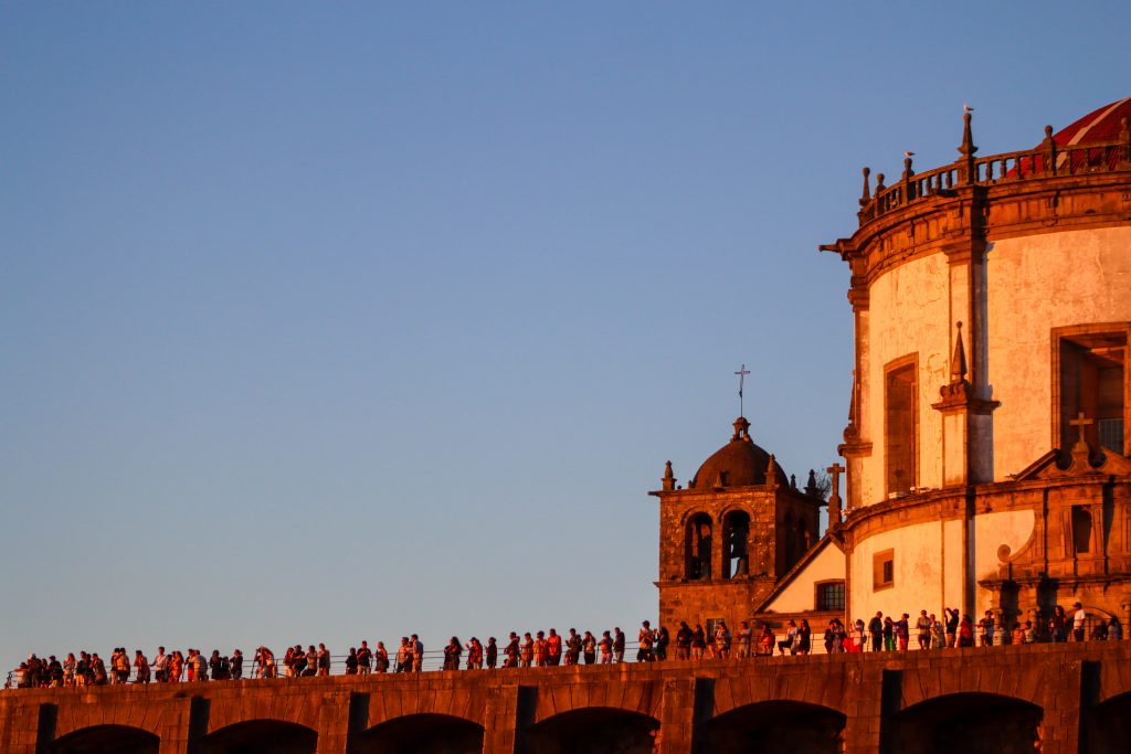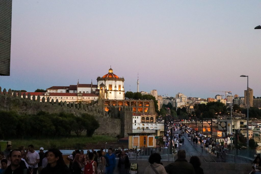 When we finish resting we got some tickets for the cable car and we went to the top of the bridge with the cable cars. The city was looking so beautiful by cable car but it was really hot that day. When we arrived at the top we walked to the Mosteiro da Serra do Pilar. That place was also looking at the city from the top with beautiful city and sunset views. On the other side of the river, Fernandine Walls of Porto were seen as well with funicular and houses. After walking around we found a suitable place to watch the sunset with friends and waited around 40 min to see the sunset. I took some photos and videos there and also the area was so crowded.