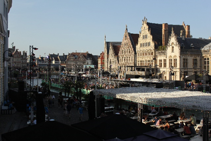After that, I wanted to find accommodation first for the night and I found a hostel in the centre. The place calls Hostel Uppelink. The location of the hostel was really nice and I was lucky there was a Gentse Feesten. I learned that the festival goes for 10 days and all around the city centre of Gent turns open music and festival areas. After I rest a bit in the hostel I went outside and I recognised the city is so alive and that festival is amazing.