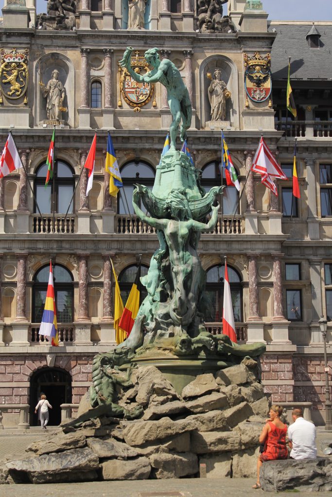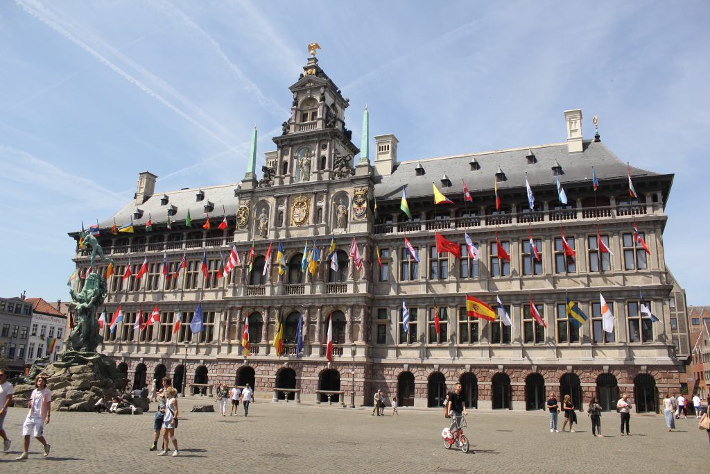 After that, I visited the Cathedral of our lady Antwerp cathedral. There was a huge cathedral that looked like a symbol of the city. Then walked to Brabo’s monument. That area was including Antwerp City Hall too. City hall had many countries’ flags and the square was a nice square.